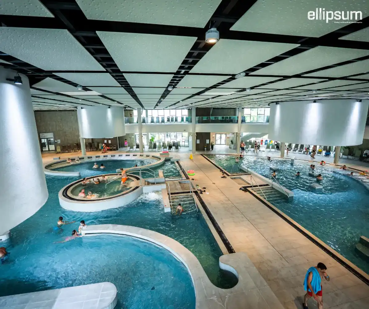 This unique spa complex was built in the second phase of Miskolctapolca’s spa complex project; the first phase being a total remodel of the Miskolctapolca Beach Bath, the outdoor pool complex, which was completed in 2015.
