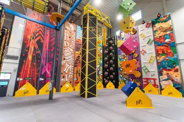 A 3000 m2-es park önmagában egy vizuális sokkhatás. Elsőre a mászófalak színes kavalkádja ragadja meg a tekintetet. 14 beltéri és 8 kültéri különféle tematikájú mászófal, egyre nehezedő útvonalak.