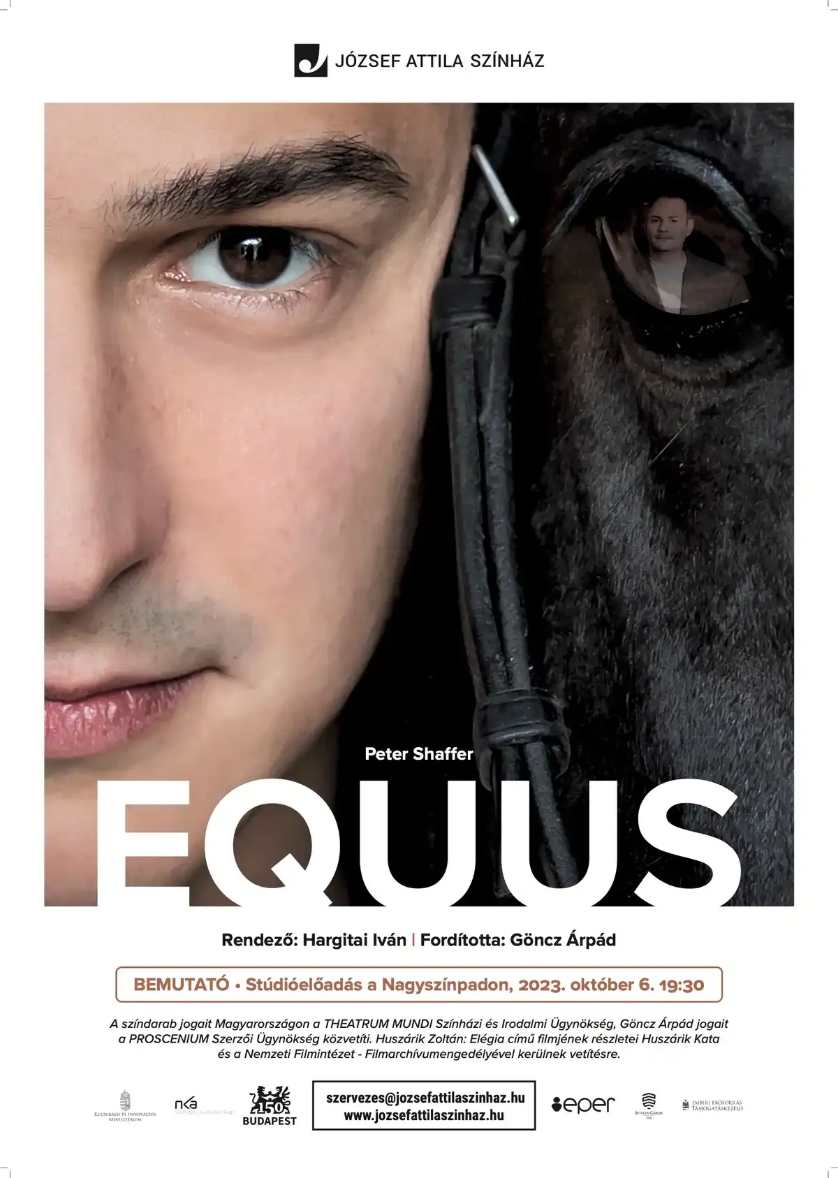 Az Equus című stúdiószínpadi előadásunkat a díszlet egyedi kialakítása miatt a Nagyszínpadon játsszuk, ami csak lépcsőn keresztül megközelíthető, vagyis nem akadálymentes, kérjük, ezt vegyék figyelembe.