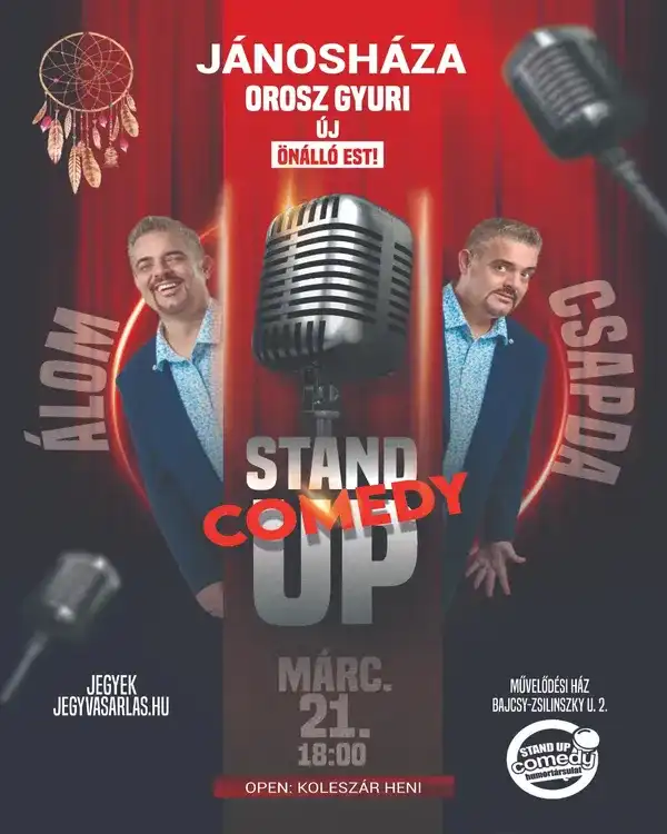 Reméljük, hogy sokan vannak, akiknek az az álma, hogy személyesen találkozzanak Orosz Gyurival! Bárcsak minden álmot ilyen könnyű lenne elérni. Óvodás korunktól vannak álmaink: gazdagok szeretnénk lenni, csodálatos házra, párra vagy autóra vágyunk. Van, aki orvos szeretne lenni, van, aki Ricky Martin felesége, de olyan is van, hogy valaki széppé és izmossá szeretne válni. A legtöbb dolog rajtunk múlik, ha kitartóak vagyunk és szorgalmasok, akkor szinte minden elérhető. Természetesen, ha valami nem jön össze, akkor soha nem magunkat hibáztatjuk, hanem a körülményeket. Hány embert hallottuk már, ahogy elmeséli, hogy mi lehetett volna belőle. De a lényeg, hogy mi lett. Ezen az előadáson kiderítjük, hogy miről álmodik a közönség és hogyan lehet ezt elérni. Ha az egyik álmod, hogy Orosz Gyurival találkozz, akkor ott a helyed, a többit meg megbeszélitek.
